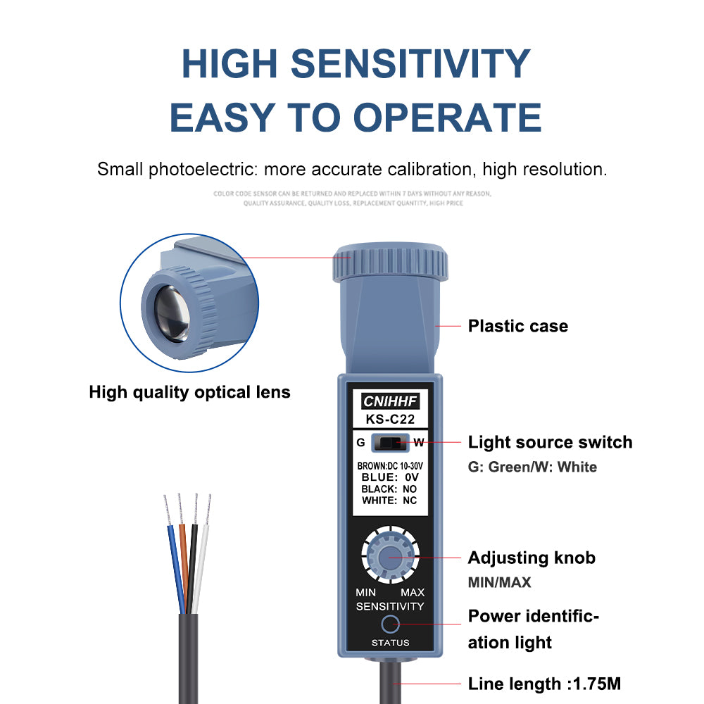 El KS-C22 es ideal para entornos industriales que requieren detección precisa de marcas de color. Su diseño compacto y su amplio rango de voltaje lo convierten en una solución versátil y eficiente para múltiples aplicaciones.