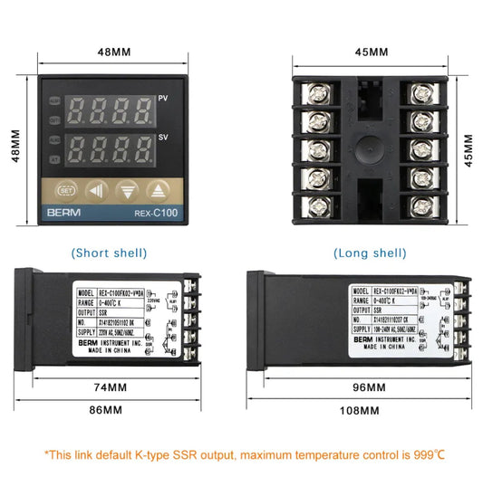 Kit controlador de temperatura PID Voltaje CA 100~240 V Incluye relé de estado sólido SSR 40DA, sensor de termopar tipo K